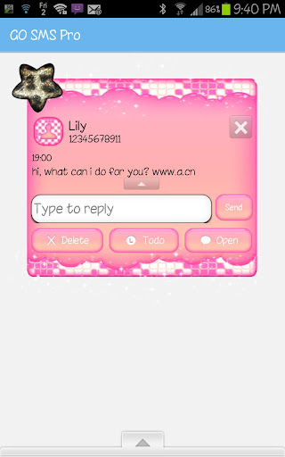 -Custom Font Colors (if you do not like the font color that the themes comes with, you can customize the theme font and font colors in the settings menu under the "advanced" tab in Go SMS Pro. This can be done with ANY Go SMS Pro theme).