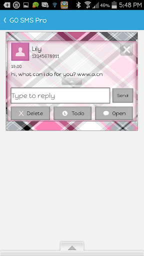 -Custom Font Colors (if you do not like the font color that the themes comes with, you can customize the theme font and font colors in the settings menu under the "advanced" tab in Go SMS Pro. This can be done with ANY Go SMS Pro theme).
