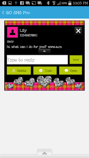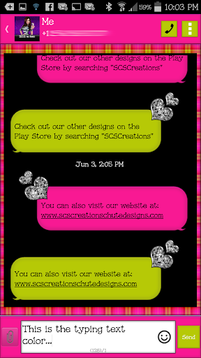-Custom Font Colors (if you do not like the font color that the themes comes with, you can customize the theme font and font colors in the settings menu under the "advanced" tab in Go SMS Pro. This can be done with ANY Go SMS Pro theme).