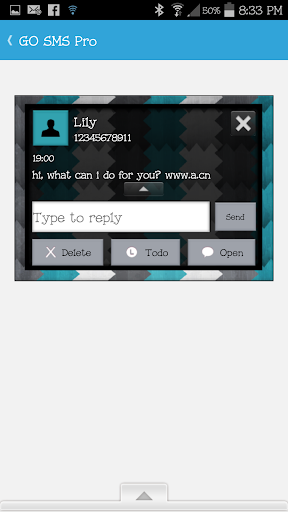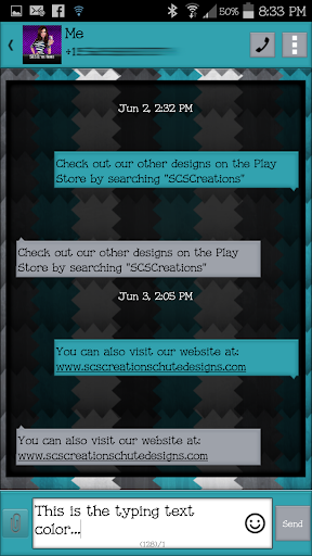 -Custom Font Colors (if you do not like the font color that the themes comes with, you can customize the theme font and font colors in the settings menu under the "advanced" tab in Go SMS Pro. This can be done with ANY Go SMS Pro theme).