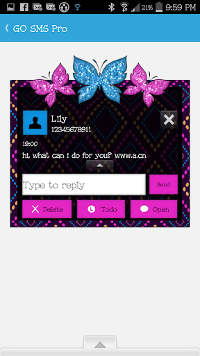 -Custom Font Colors (if you do not like the font color that the themes comes with, you can customize the theme font and font colors in the settings menu under the "advanced" tab in Go SMS Pro. This can be done with ANY Go SMS Pro theme).