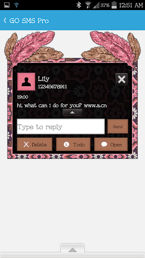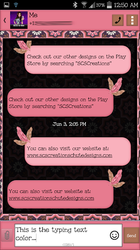 -Custom Font Colors (if you do not like the font color that the themes comes with, you can customize the theme font and font colors in the settings menu under the "advanced" tab in Go SMS Pro. This can be done with ANY Go SMS Pro theme).