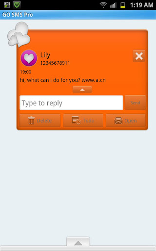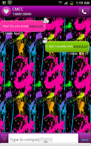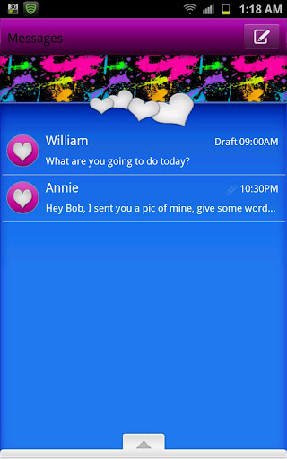 -Custom Font Colors (if you do not like the font color that the themes comes with, you can customize the theme font and font colors in the settings menu under the "advanced" tab in Go SMS Pro. This can be done with ANY Go SMS Pro theme).