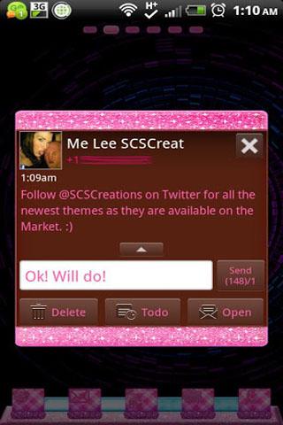 -Custom Font Colors (if you do not like the font color that the themes comes with, you can customize the theme font and font colors in the settings menu under the "advanced" tab in Go SMS Pro. This can be done with ANY Go SMS Pro theme).