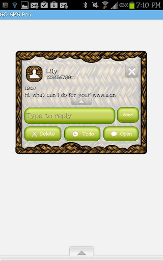 -Custom Font Colors (if you do not like the font color that the themes comes with, you can customize the theme font and font colors in the settings menu under the "advanced" tab in Go SMS Pro. This can be done with ANY Go SMS Pro theme).