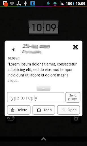 2. To apply the theme within GO SMS Pro, download it from Menu->Theme(or Plug-in UI->Theme shop). After it has downloaded, it will be displayed in the "Installed Theme" Tab, click and apply it.