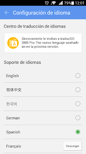 This is Spanish language for GO SMS Pro, completed close to 100%.