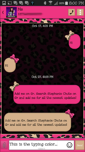 -Custom Font Colors (if you do not like the font color that the themes comes with, you can customize the theme font and font colors in the settings menu under the "advanced" tab in Go SMS Pro. This can be done with ANY Go SMS Pro theme).