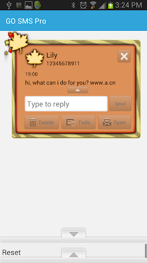 -Custom Font Colors (if you do not like the font color that the themes comes with, you can customize the theme font and font colors in the settings menu under the "advanced" tab in Go SMS Pro. This can be done with ANY Go SMS Pro theme).