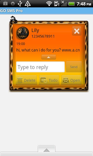 -Custom Font Colors (if you do not like the font color that the themes comes with, you can customize the theme font and font colors in the settings menu under the "advanced" tab in Go SMS Pro. This can be done with ANY Go SMS Pro theme).