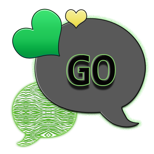 This go sms theme has a background that is lime green zebra print, there are yellow and green hearts on the chat bubbles.