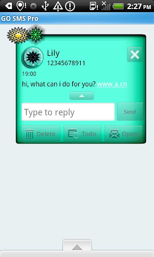 -Custom Font Colors (if you do not like the font color that the themes comes with, you can customize the theme font and font colors in the settings menu under the "advanced" tab in Go SMS Pro. This can be done with ANY Go SMS Pro theme).