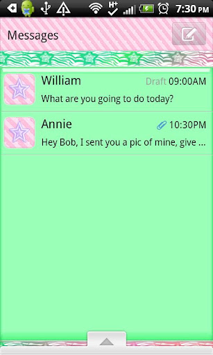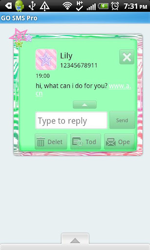 -Custom Font Colors (if you do not like the font color that the themes comes with, you can customize the theme font and font colors in the settings menu under the "advanced" tab in Go SMS Pro. This can be done with ANY Go SMS Pro theme).