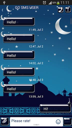 如果你需要一个假期,你不能等待离开你所在的城市不同的东西,那么不要再观望. 现在,您可以体验到一个奇妙之旅的神奇,看看神秘的阿拉伯天空和所有它的闪亮星星一样璀璨的珠宝和钻石. 自定义您的智能手机或平板电脑与新的GO短信加强版的阿拉伯天空主题的短信布局,享受美丽的阿拉伯文化和天空无奇不有. 今天下载新的GO短信加强版的阿拉伯天空的主题,它是完全免费.