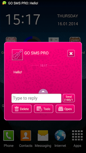 - 要安装,请执行以下3个简单的步骤:先按下打开下载后,进入安装目录,选择GO短信加强版粉红色的夜光主题,然后按应用主题. 你做!