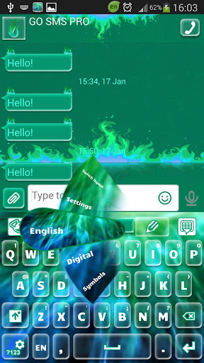 通过下载新的GO短信加强版绿色火焰的主题分散你的精力和强烈的个性给大家!. 是引领潮流并走向绿色!