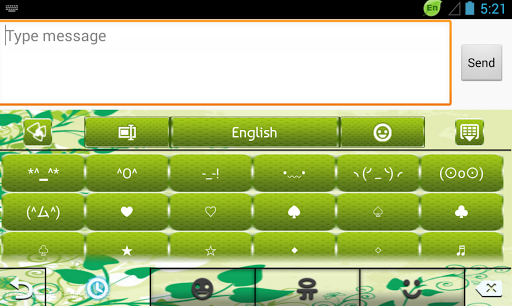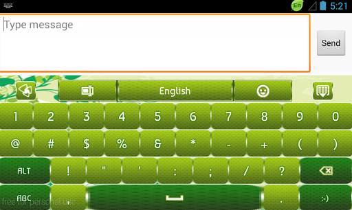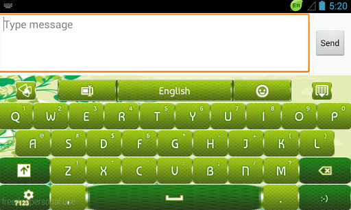 绿色花朵的键盘主题是与所有版本的GO输入法兼容,所以你可以下载它的应用程序或Android,你有什么版本. 支持多国语言也可以,并且将色彩的语言或输入设置您的手机不管. 下载绿花走到今天键盘的主题,让你的个性展示,通过你的应用程序. 可以访问更多的主题就是这样的,并给它打在您方便的帮助开发者可以更快乐.