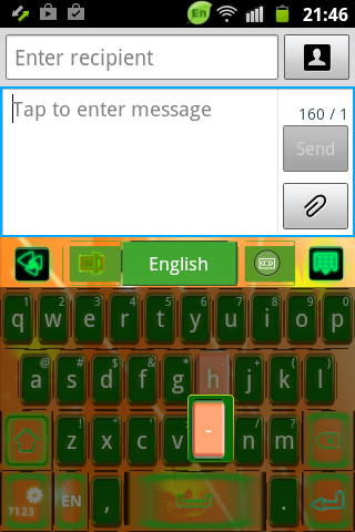 白色字符,綠色按鈕和橙色背景的完美結合。