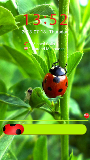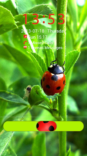 儲物櫃到移動照片瓢蟲秸稈。美麗的鳥兒在你的手機照片。如果你喜歡大自然,什麼是活著的一切應用程序是為你。更衣室的背景瓢蟲踏著秸稈。時鐘是紅色的,通知圖標是紅色的,的通知文本和日期都是白色的。鎖定欄為綠色按鈕動機瓢蟲是紅色有黑色斑點。的應用性質和昆蟲愛好者。如果你喜歡這個程序,請看到我們的其他項目,與自然的主題。該應用程序是免費的。