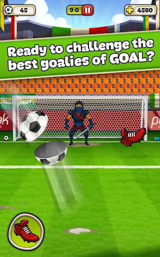 Reach the fever pitch of penalty kicks. Play the most entertaining soccer Flick shooting game, and try to win three stars with your exclusive shots.You will be a fan with full enjoyment. Download GOAL right now, and start to win glory against goalkeepers & your friends and defeat your rivals by using your amazing football skills.