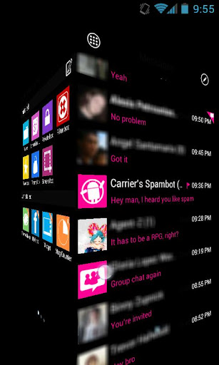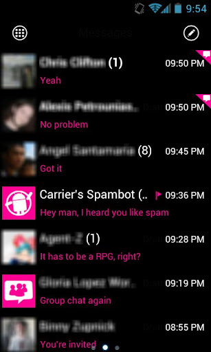 WP7 Pink is a free pink/black theme for GOSMS Pro inspired in the slick and mimalistic WP7 interface.