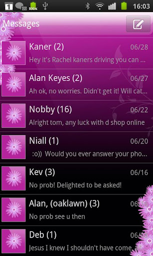 This is a cool new Pink & Purple Flowers GO SMS Theme.