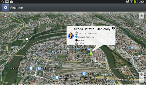 - zobrazení jízd v mapách Google včetně Street view