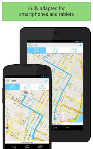 * Full-fledged navigation with voice prompts (turn-by-turn)