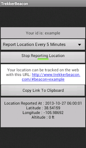 This application will report your location via the TrekkerBeacon.com website approximately every 15 seconds to anyone who knows or discovers your id. TrekkerBeacon only stores your last reported location and does not record a history of where you have been. TrekkerBeacon is not able to report your location when internet access is unavailable.