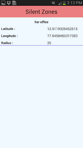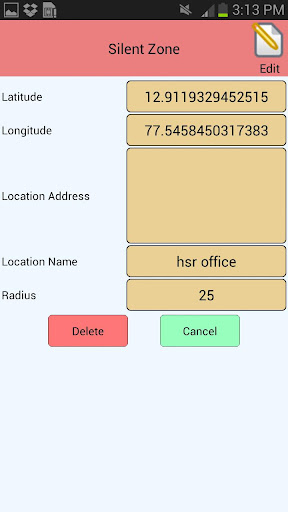 The locations (Only One location for Free version) for Silent Mode can be saved locally to the mobile. The app will present you the GPS coordinates and address, you are then prompted to enter the name of the location and specify the radius of Silent Zone. Upon saving the location, the mobile automatically turn to Silent Mode verifying its functionality as you are now in the Silent Zone. The next time you pass by this location, your mobile will automatically turn to Silent Mode without any intervention from you.