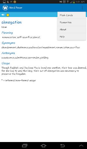 2. Each word in the list has an extensive collection of Synonyms,Antonyms and Usage.