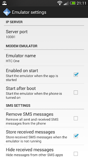 The GSM Modem Emulator app emulates the SMS functions of a GSM modem over a WIFI connection. The modem emulator supports a subset of the ETSI GSM 07.05 and GSM 07.07 AT command specifications that is optimized to work with Diafaan SMS Server. A great feature of the GSM Modem Emulator is that it works with GSM phones as well as CDMA phones. This makes it possible to use the GSM Modem Emulator with GSM networks all over the world and also the Sprint and Verizon CDMA networks in the US.