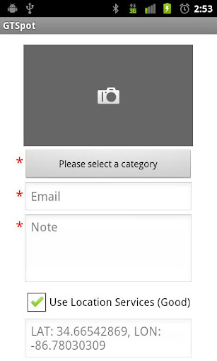 GTSpot facilitates crowdsourced, incident reporting. Users can quickly and easily report a Problem, Damage, Issue, or Observation with a photo, note, and geographic location. These reports are send to a GTWeb Server and can be used in conjunction with GTWeb or independently.