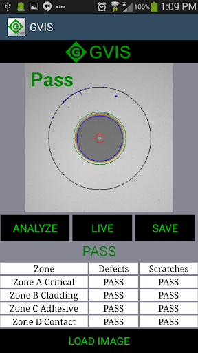 Greenlee's GVIS application is your wireless solution for fiber end imaging. Developed to work alongside Greenlee's GVIS 400 Inspection Scope and GPAD 250, GVIS allows test technicians to inspect, grade, and save images of fiber ends for various fiber optic installations. GVIS’s automatic pass/fail technology is the perfect tool for any job site as it helps technicians ensure clean, reliable optical connections every time. The software is calibrated to be compliant with the IEC 61300-3-35 industry standard, and the results screen after fiber examination shows testers exactly how many defects were found on the fiber end for that zone.