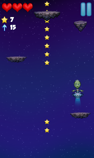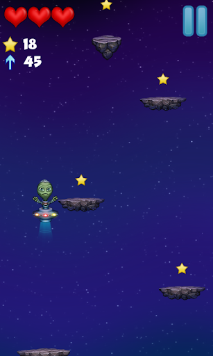 Overcome the asteroid belt on flying saucer watching out enemies. Use power-ups allows faster and jump higher, Become the best pilot in the Galactic Jump!