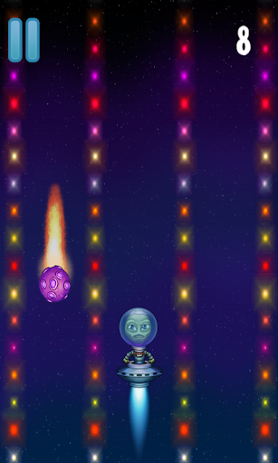 Help the little alien go all the way up through the numerous asteroids and meteors.