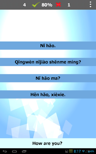 Learn Chinese Mandarin fast and effectively with Chinese Mandarin Learning Game .Contains thousands of words with native speaker audio . You learn in Chinese Mandarin in the Latin characters familiar from Western European countries.