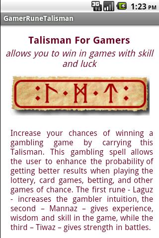 Increase your chances to win games by carrying this Talisman. This gambling spell allows the user to get better results when playing the lottery, card games, betting, and other games of chance. The first rune - Laguz - increases the gambler intuition, the second – Mannaz – gives experience, wisdom and skill in the game, while the third – Tiwaz – gives strength in battles.