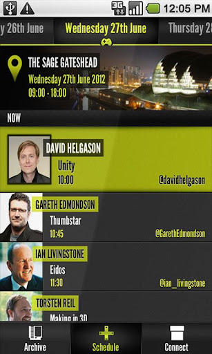 The official App for the GameHorizon Conference 2012 contains real time updated information across the two day event. This includes a full real time speaker schedule, all parties and a now and next feature to keep you up to date with talks and event locations.