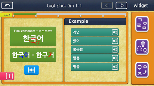 Thông qua chương trình học tập 5 ngày có thể học quy tắc phát âm chữ cái tiếng Hàn và quy tắc 6 kiểu phát âm tại bước 2 chữ