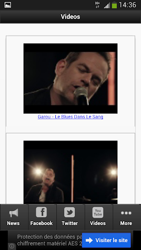 Avec cette app découvre les chansons, les vidéos de Garou sur sa chaine youtube et suis son actu twitter et facebook
