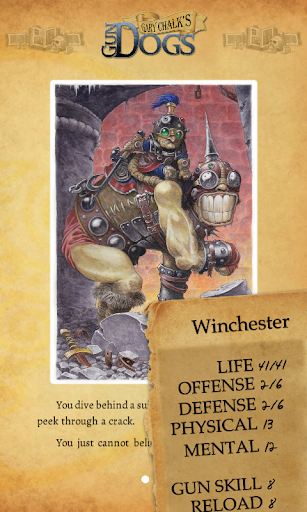 Gary Chalk’s Gun Dogs has been created using Tin Man Games’ critically acclaimed Gamebook Adventures Engine featuring: