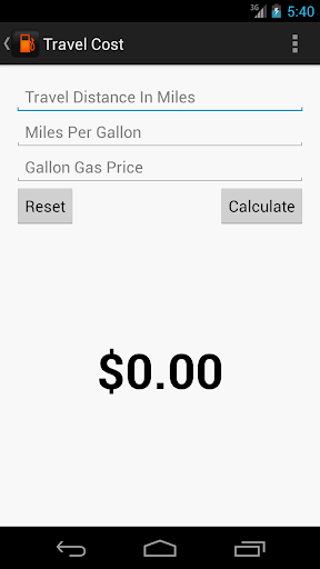 With the Gas Calculator's MPG Calculator, you can calculate your miles per gallon(MPG). Gas Calculator also allows you to calculate the gas cost of traveling a given distance, and calculate how far you can travel with a given amount of gas. Very simple, clean, and easy to use! No bells and whistles. Now with over 100 hypermiling tips! What is hypermiling? Learn how to save up to 50% on your gas cost with hypermiling! Gas Calculator will be updated with more features soon! If you have any suggestions or bug reports please e-mail us!