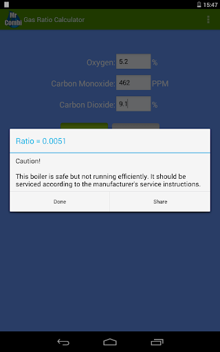 Use the Gas Ratio Calculator to process the results from your Gas Flue Analyser and find the CO/CO2 ratio for natural gas.
