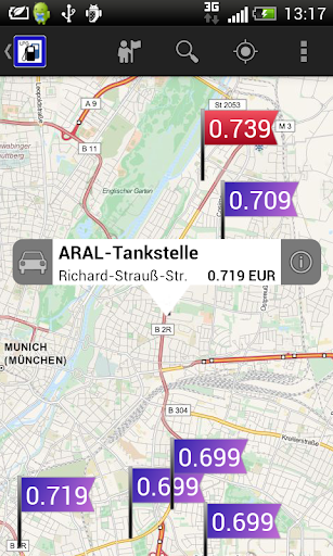 + Mit dem optionalen Routenplaner können Tankstellen entlang einer Route gefunden werden