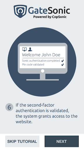 GateSonic is a strong authentication solution created to prevent brute force attacks, Trojans or sniffers hacking web sites. Secured data is exchanged between the web site and the smartphone through encrypted ultrasonic waves. The strong authentication is achieved by adding a second level of authentication: pin code, password or biometrics. This high level of security allows us to propose GateSonic as an authentication solution for the industry of banking or cyber security.
