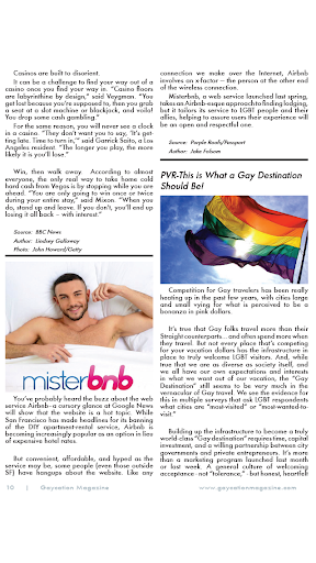 Gaycation Magazine was created because the personality of LGBT travel is changing. The world has grown smaller and more accessible, yet more homogenized and less exotic. Our goal is to inspire and guide those who travel the world to connect with its people, experience their cultures, and understand their perspectives. Todays LGBT travelers demand more than the superficial, the mass-produced, the mass-consumed and the mass-experienced. They look for the authentic in people, destinations, and products. They long for meaningful and memorable connections with the places they go and the people that they meet.