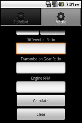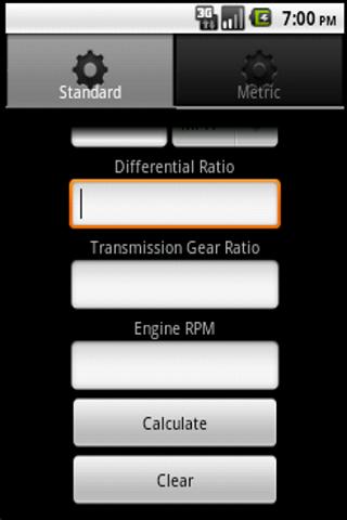 Easy and versatile tool to calculate many ratios of your drive train. Will calculate any ratio based on other fields. Handy for anyone wanting to re-gear their vehicles, change tire size, check rpm at a given speed (or speed at given rpm), etc. Both standard and metric measurements are supported. Includes large diameter tires. Feature requests are welcome.