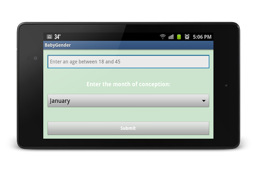 This app is for predicting the gender of baby. The app is working based on Chinese baby gender calender and no authority is guaranteed in the result. The app development is purely based for fun. Let's predict the gender of your future baby.