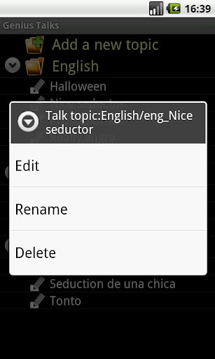 - Using your phone menu button, you can add new topics, edit your own words, directly on the app or even on your PC by accessing your SD card